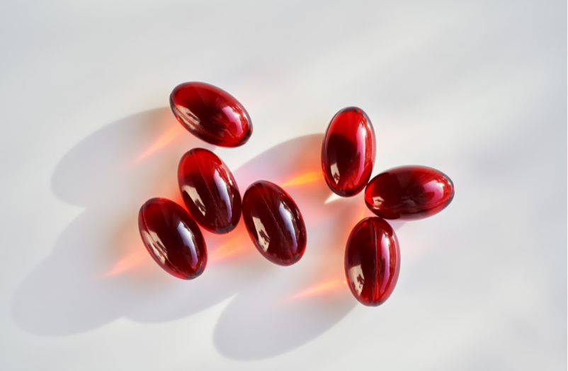 アスタキサンチンをはじめとするカロテノイド類は脂溶性成分のため 、油脂と組み合わせることで吸収率が大幅に向上します。そのため、油性液などを内容物にした「ソフトカプセル」が最も相性の良い製品形態といえます。